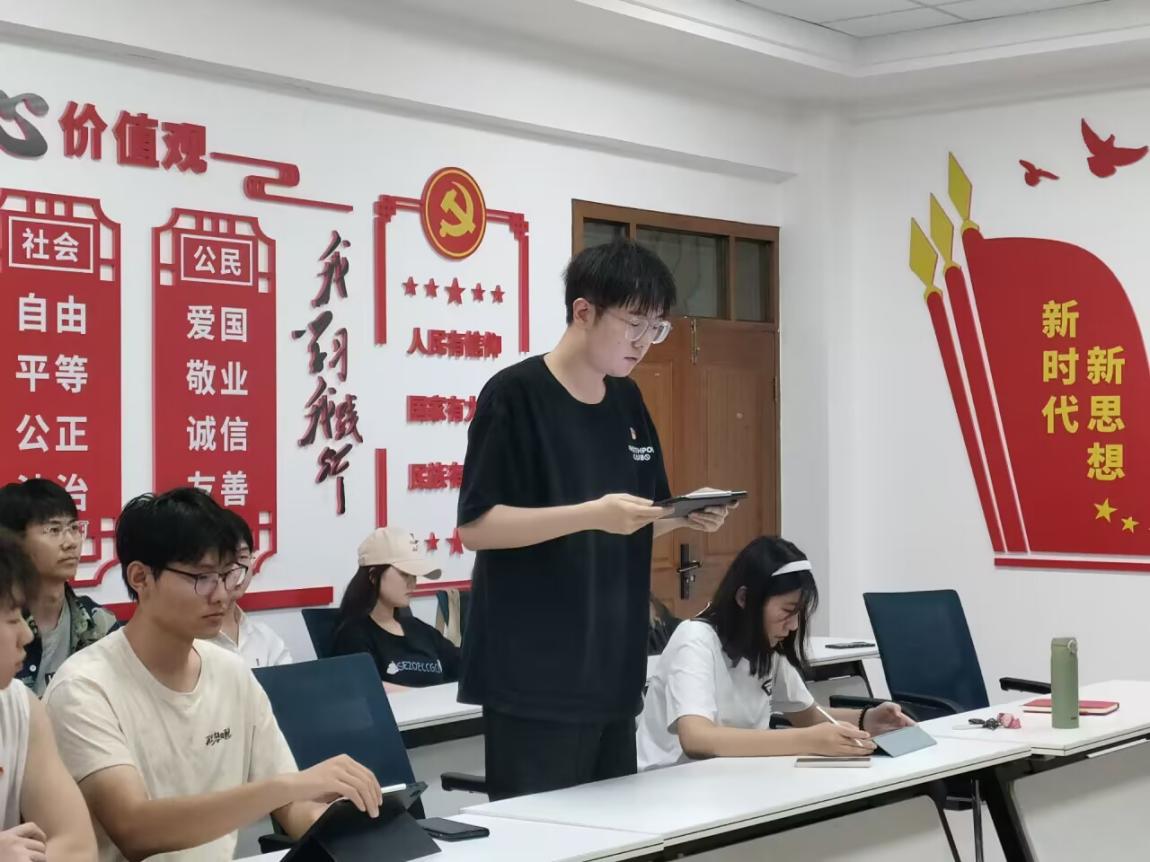参会同志就学习内容进行探讨交流,高铭远同志说到:“习近平总书记在对中农科技小院的回信当中肯定了青年人走进乡土中国深处,要‘自找苦吃’的说法,身为一名农业院校的学生党员,总书记的话让我很受鼓舞。”吕姝怡同志也分享到:“作为农业院校的学子,我们应进一步坚定信念、增强信心,择业为农,无上光荣,将理论学习与实践紧密结合,把强农兴农的情怀继续传递,在农村这片希望的田野之上建功立业,为乡村振兴贡献自己的力量。”