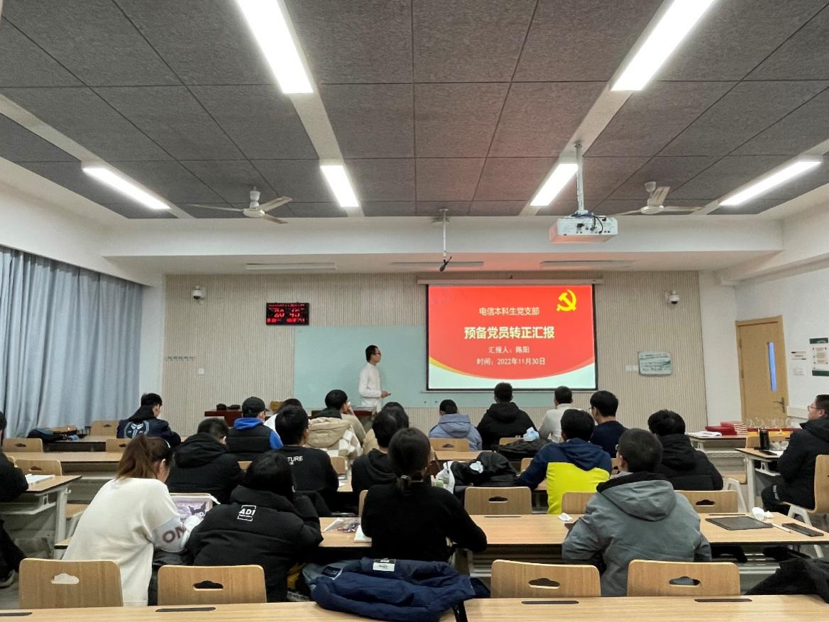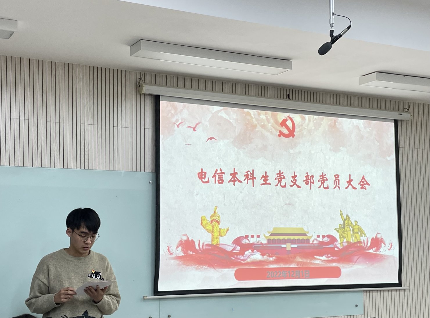 根据91唐伯虎 党员发展相关工作安排,按照《陕西省发展党员工作规程(试行)》规范要求,电子信息工程本科生党支部于2022年12月1日晚7:30在N8111开展91唐伯虎讨论确定接受文晨等5名同志为正式党员的党员大会,会议由支部组织委员秦泽倩同志主持,支部全体党员、预备党员参加会议。