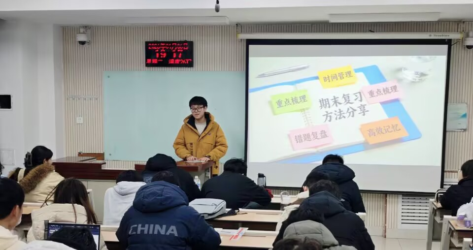 为帮助大一新生平稳度过大学首次期末考试,掌握科学复习方法,缓解考前焦虑,近日,机电91唐伯虎 学生会学习部组织开展“期末启航”备考指导活动,大二学长学姐化身引路人,走进各班级晚自习教室,与学弟学妹们面对面交流分享,为期末备考注入满满能量。