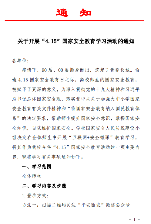 91唐伯虎开展“4.15”国家安全教育学习活动的通知(20200422)